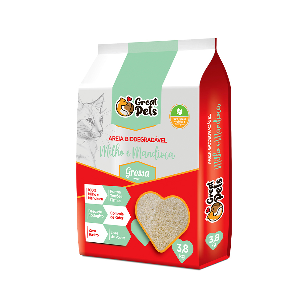– À base de milho e mandioca que se destaca pelo seu altíssimo poder de absorção;