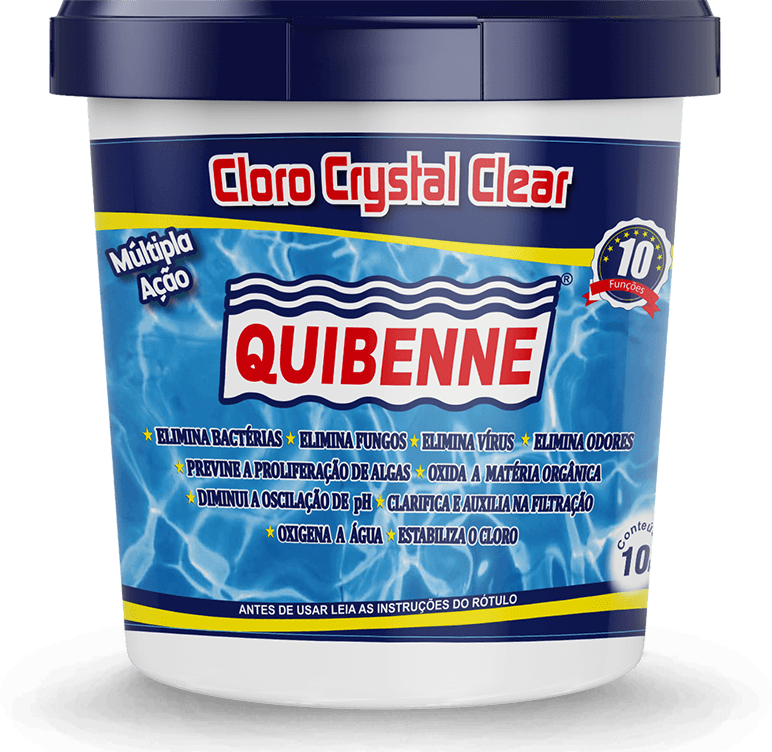 O Cloro para piscina Crystal Clear QUIBENNE é um excelente agente desinfetante para água de piscina.
