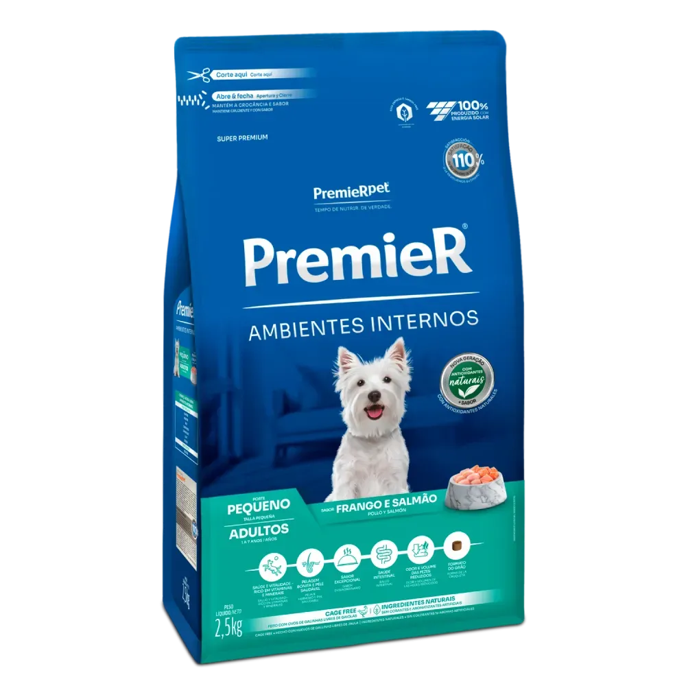Ração Premier Ambientes Internos Cães Adultos Raças Pequenas Frango e Salmão 2,5 kg