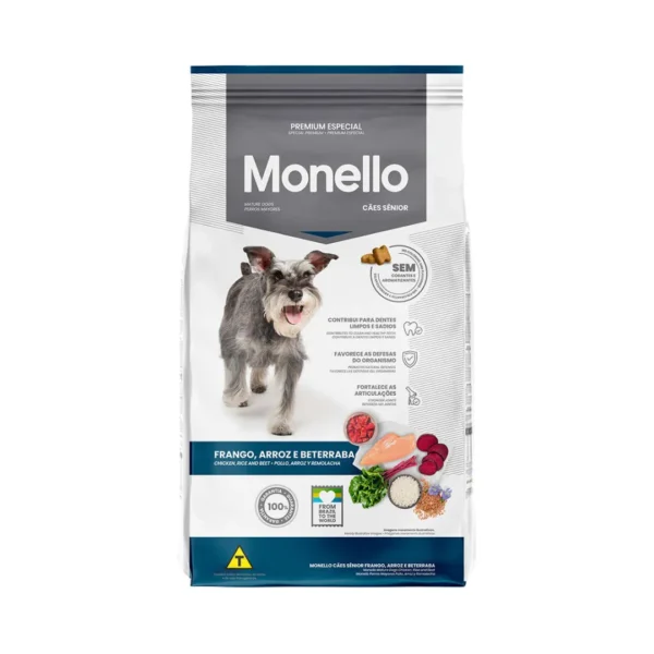 Ração Seca Monello Frango, Arroz e Beterraba para Cães Sênior